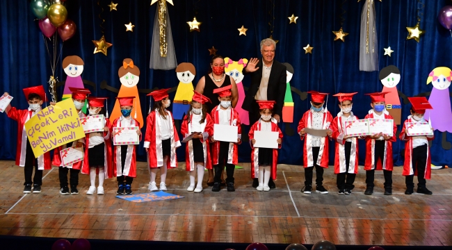 EGEOLAY/Narlıdere Belediyesi Nar Çiçekleri Anaokulu’nda mezuniyet coşkusu yaşandı. 2020-2021 yılı eğitim ve öğretim dönemini başarı ile bitiren minikler ilk kez diploma aldı, kep fırlattı. Atatürk Kültür Merkezi’nde maske ve mesafe kurallarına uygun olarak gerçekleştirilen törende öğrenciler drama ve dans gösterileri sergiledi. Başkan Ali Engin "Çocuklarımızın her birini tebrik ediyorum. Mezuniyetleri hayırlı olsun" dedi.