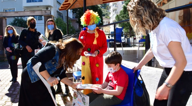 ÇOCUKLARA POSTER VE BAYRAK DAĞITILDI