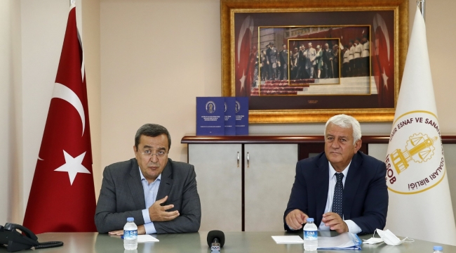 EGEOLAY/Konak Belediye Başkanı Abdül Batur, İzmir Esnaf ve Sanatkarlar Odaları Birliği Yönetim Kurulu Başkanı Zekeriya Mutlu’yu ziyaret ederek belediyenin esnafa yönelik uygulamaya koyduğu online ruhsat ile imar ve mesafe uygunluk başvuru işlemlerini, hazırlanan sunum eşliğinde tanıttı. Başkan Batur, işyeri açmada büyük kolaylık sağlayan online hizmet ile esnafın ruhsat işlemlerini hızlıca bitirip işletmelerini açmaları için yanlarında olduklarını ve esnafı desteklediklerini bir kez daha vurguladı.