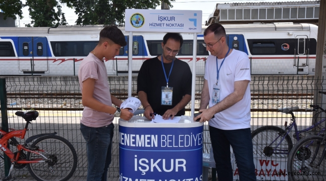 Menemen Belediyesi, istihdam seferberliğine katkıda bulunmak için bünyesinde bulunan İŞKUR Hizmet Noktası birimi ile çalışmalarını sürdürüyor. İş arayan firmalarla görüşmelerini artıran Menemen Belediyesi İŞKUR Hizmet Noktası, iş arayan vatandaşa daha hızlı ulaşmak için Menemen’in çeşitli mahallelerinde stant açtı. İlk etapta Cumhuriyet Meydanı, Asarlık, Koyundere ve Kent-2 bölgesinde açılan İŞKUR Hizmet Noktası stantları, iş arayan vatandaşların ayağına kadar gidiyor.