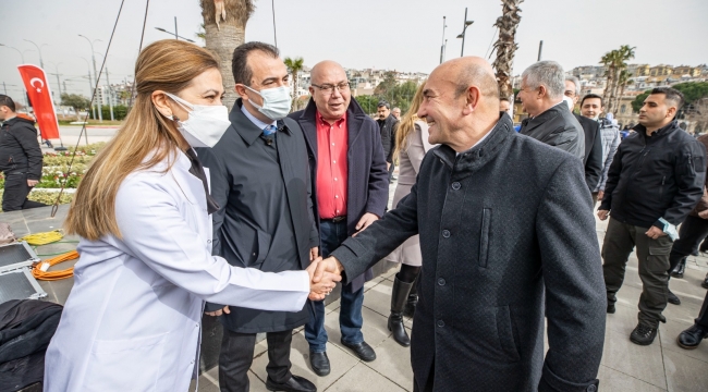 İzmir Büyükşehir Belediyesi tarafından pandemi süreci boyunca canlarını dişlerine takarak çalışan sağlık emekçileri için yaptırılan Pandemi Kahramanları Anıtı törenle açıldı. 14 Mart Tıp Bayramı etkinlikleri kapsamında 15 Temmuz Demokrasi Şehitleri Meydanı'na yerleştirilen Pandemi Kahramanları Anıtı'nın açılışına İzmir Büyükşehir Belediye Başkanı Tunç Soyer, CHP İzmir milletvekilleri Ednan Arslan, Tacettin Bayır, Kani Beko, CHP İzmir İl Başkanı Deniz Yücel, İzmir Büyükşehir Belediyesi Başkan Vekili Mustafa Özuslu, İzmir Büyükşehir Belediyesi Genel Sekreteri Dr. Buğra Gökçe, Konak Belediye Başkanı Abdül Batur, Menderes Belediye Başkanı Mustafa Kayalar, Karaburun Belediye Başkanı İlkay Girgin Erdoğan, Beydağ Belediye Başkanı Feridun Yılmazlar, İzmir İl Sağlık Müdür Yardımcısı Uzman Dr. Hüseyin Bozdemir, İzmir Tabip Odası Başkanı Lütfi Çamlı, İzmir Büyükşehir Belediyesi bürokratları, İzmir Büyükşehir Belediyesi'ne bağlı şirketlerin genel müdürleri, sağlık emekçileri, meclis üyeleri, siyasi parti temsilcileri ve yurttaşlar katıldı.