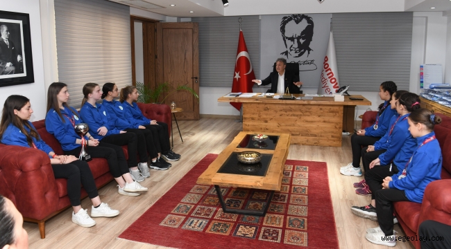 EGEOLAY/Ulusal ve uluslararası organizasyonlarda elde ettiği başarılarla Trampolin Cimnastik’te bir ekol olan Bornova Belediyespor, Samsun’da düzenlenen Kulüplerarası Türkiye Şampiyonası’ndan 2 kupa ve 7 madalya ile döndü. Yeşil-Beyazlılar, Büyük Kadınlar Kategorisi’nde takım halinde Türkiye Şampiyonu oldu. Şampiyona sonrası cimnastikçilerin ilk ziyareti ise Bornova Belediye Başkanı Dr. Mustafa İduğ’a oldu. Kupa ve madalyaları ile makama gelen cimnastikçiler kupalarını Başkan İduğ’a hediye etti.