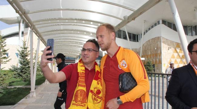 Özel uçakla Sivas Nuri Demirağ Havalimanı'na gelen sarı-kırmızılı kafileyi, bir grup taraftar karşıladı. Teknik Direktör Fatih Terim ve futbolculara sevgi gösterisinde bulunan taraftarlar, teknik heyet ve oyuncularla hatıra fotoğrafı çektirdi. Galatasaray kafilesi, daha sonra otobüsle konaklayacağı otele gitti. Otel önünde bekleyen sarı-kırmızılı taraftarlar, takımları lehine tezahürat yaptı. Sivas 4 Eylül Stadı'ndaki Demir Grup Sivasspor - Galatasaray maçı bugün saat 21.00'de başlayacak.