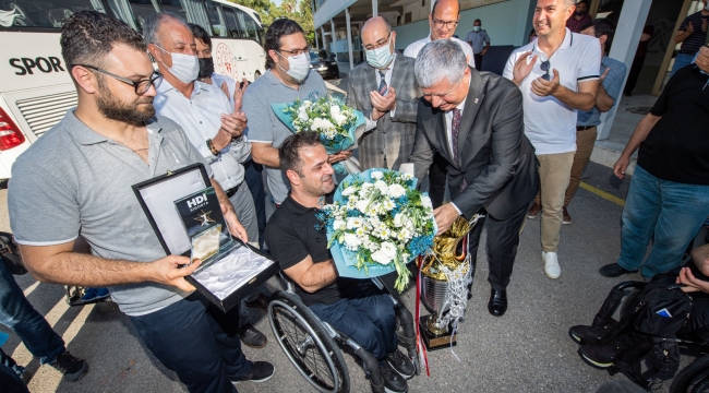 EGEOLAY/HDI Sigorta Tekerlekli Sandalye Basketbol Süper Ligi’nde 2020-21 sezonunu şampiyonlukla tamamlayan İzmir Büyükşehir Belediyespor’un oyuncuları coşkulu bir şekilde karşılandı. Takım Antrenörü Erdinç Kılıç, 17 yıl sonra yeniden şampiyonluğu yakaladıklarını belirterek, “Herkesin bu başarıda emeği var. Çok mutluyuz” dedi