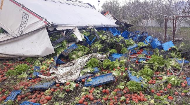 Burdur'un Bucak ilçesi yakınlarında kontrolden çıkan sebze yüklü tır devrildi. Kazada sürücü hafif şekilde yaralandı.