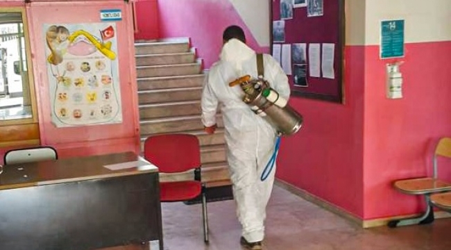 Uygulama kapsamında, okul binalarında temizlik ve sağlığa uygunluk açısından riskli olan lavabo, tuvalet ve bahçe bölümlerinde ilaçlama yapıldı.