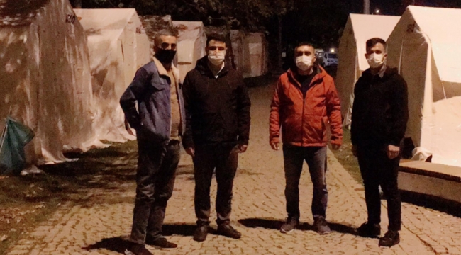 Şehit -Gazi Vatansever Kamu Görevlileri Konfederasyonu İzmir İl başkanı Gazi Tuncay Kılıç ve Bursa'dan gelen Şehit Gazi Sen - Kültür Genel başkanı Fikret Özmen, Şehit Gazi Sen -Enerji kolu genel başkanı Tufan Alabalık ve Şehit Gazi Sen - Büro genel Başkan yardımcısı Mikail Duran,İzmirde kurulan çadır kentte incelemelerde bulunup,çadır kentte ki vatandaşlara geçmiş olsun dileklerini ilettiler. Rabbim çadırlarda kalan tüm kardeşlerimize yardım etsin.