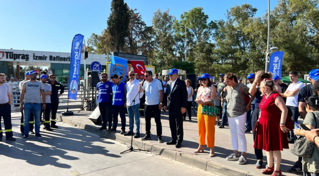 TÜPRAŞ Rafinerisi önünde işçilere seslenen CHP İzmir Milletvekili Bedri Serter, “Emek en yüce değerdir. Emeğe yönelik haksızlıkların her zaman karşısındayız. TÜPRAŞ yönetimine işten çıkarmaları geri alması çağrısı yapıyorum” dedi.