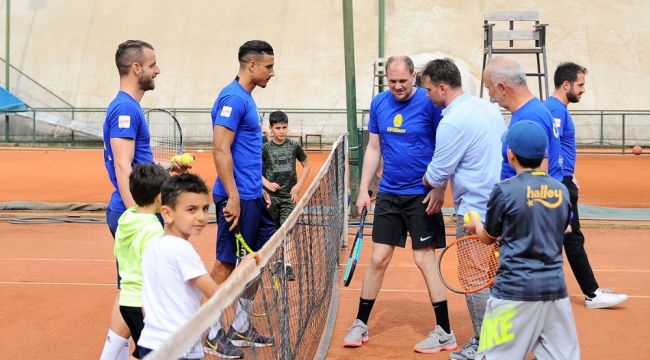 Fenerbahçe'nin İspanyol golcüsü Roberto Soldado ve Faslı oyuncusu Nabil Dirar, otizme dikkat çekmek amacıyla, otizmli çocuklarla tenis kortuna çıktı ve gösteri maçında oynadı. Antuka...