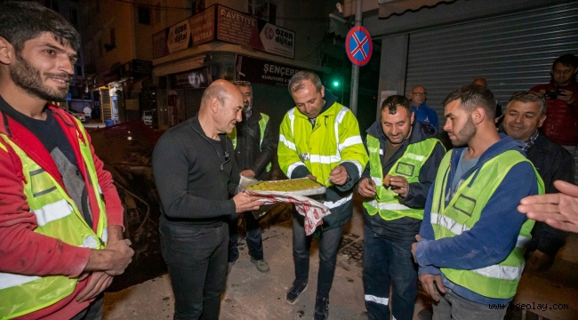 Kemeraltı’nda esnafın işlerini aksatmamak için çalışmaları gece sürdürdüklerini belirten Başkan Tunç Soyer, “Kemeraltı'nın 50 yıllık sorununu çözüyoruz. Çok zor ve büyük bir çalışma. Sokakların altındaki bütün altyapıyı değiştiriyoruz. Altyapının ardından yol yüzeyini taşla kaplıyoruz. Kemeraltı esnafımız bu süreçte sıkıntı çekiyor. Vatandaşlar da alışveriş yaparken tabii ki sıkıntı yaşıyor. Ama bu büyük adımı atmazsak Kemeraltı'nın o hayalini kurduğumuz güzel günlerine ulaştırmamız mümkün değil” dedi.