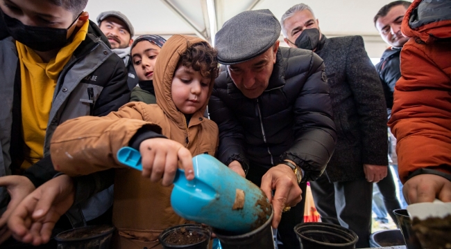Başkan Tunç Soyer’i alanda Seferihisar Çocuk Belediyesi’nin minikleri çevreci pankartlarla karşıladı. Teker teker alandaki stantları gezen ve doğal bitki örtüsü hakkında bilgi alan Başkan Tunç Soyer, alanda kurulan bağış alanında iki adet tüylü meşe ağacı fidesi aldı. Etkinlikte ilk fidanı Başkan Tunç Soyer ve eşi Neptün Soyer toprakla buluşturdu. Ardından doğaseverler ve sivil toplum kuruluşları bağışladığı 3 bin 816 fidanın dikimini yaptı. Büyükşehir Belediyesi tarafından ulaşımı sağlanan yurttaşlar, yeşil bir kent için destek olurken unutamayacakları bir deneyim yaşadı.