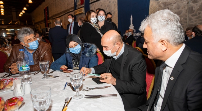 Başkan Tunç Soyer, sırayla tüm misafirlerin masasını ziyaret ederek misafirlerle yakından ilgilendi. Hayatını kaybeden yurttaşları rahmetle anan Soyer, bu yurttaşların yakınlarının yaşadığı sorunlarını, taleplerini dinledi ve tek tek not aldı.