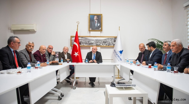 Başkan Soyer ayrıca Ege Ağrı Kültür Federasyonu Başkanı İsmail Kaya ve heyetini de ağırladı. Yürüttükleri çalışmalardan örnekler veren Federasyon Başkanı İsmail Kaya, İzmir Büyükşehir Belediyesi’nden kendilerine gelen destek için teşekkürlerini sundu. Kaya ayrıca, “Siz yaklaşık 5 senedir hizmet veriyorsunuz. Bizim gözlemlediğimiz kadarıyla sıradan belediye başkanlarının makyaj yapması gibi bir hizmet vermediniz. Kemeraltı’na girmek cesaret isteyen bir iştir. Ana arterlerde işin içine girip, genişletmek, bir şerit daha açmaya çalışmak cesaret isteyen şeylerdir. Hal böyleyken bu çalışmaların sekteye uğramasını istemiyoruz. İkinci dönemi görmek istiyoruz. Ata tohumundan tutun şehrin yeşillenmesine, kooperatifçiliğe varan çalışmalarınız var. Biz sizin belediye başkanı olarak devam etmenizi istiyoruz” diye konuştu.