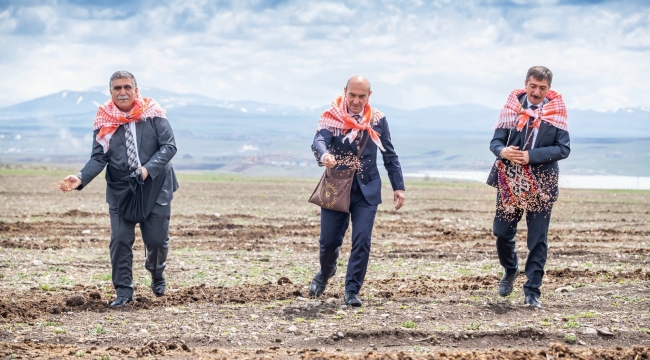 EGEOLAY/İzmir Büyükşehir Belediye Başkanı Tunç Soyer, Kars’ın Susuz ilçesinde üreticilere tohum dağıttı ve sonrasında tarlaya inerek ekim yaptı. Başkan Soyer, “Bugün aslında sadece buğday ve arpa tohumunun ekimini yapmıyoruz. Biz aslında birliğin, dostluğun, kardeşliğin tohumunu ekiyoruz. Bire bin, bire milyon veren bir refahın, bereketin hasadını yapacağız"dedi.