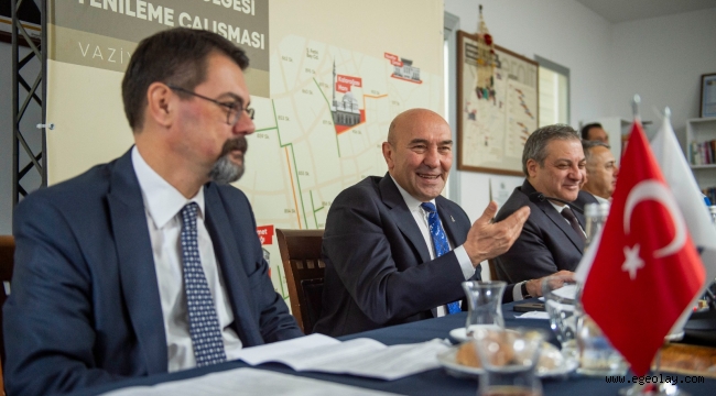 EGEOLAY/İzmir Büyükşehir Belediye Başkanı Tunç Soyer, tarihinin en büyük altyapı ve üst yapı yatırımları ile yenilenen Kemeraltı Çarşısı’nda sahada çalışan işçilerle buluştu, ardından basın mensupları ile bir araya geldi. Kemeraltı'na bugüne kadar 770 milyon lira yatırım yapıldığını, dört etap bittiğinde bunun 2 milyar lirayı bulacağını ifade eden Başkan Soyer, “Adeta mücevherci gibi, cerrah gibi çalışıyoruz. Çarşıda büyük bir dönüşüm, devrim yaşanıyor. Hedefimiz UNESCO Dünya Mirası Listesi'ne girmek. Kemeraltı'nı seçim projesi değil tam tersine geçim projesi olarak görüyoruz” diye konuştu.