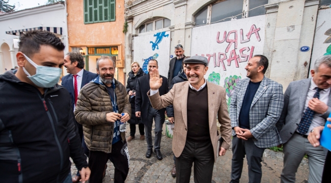 İzmir’in tüm ilçelerinde muhtarlarla bir araya gelerek sorunları tespit eden, proje ve yatırımları yerinde inceleyen İzmir Büyükşehir Belediye Başkanı Tunç Soyer, 2022 yılının ilk ziyaretini Urla’ya yaptı. İzmir Büyükşehir Belediyesi Urla Yerel Hizmetler Binası’nda ilçedeki muhtarlarla buluşan Başkan Tunç Soyer talepleri dinleyip not aldı. Başkan Soyer’e İzmir Büyükşehir Belediyesi Başkan Vekili Mustafa Özuslu, CHP İzmir İl Başkanı Deniz Yücel, İZBETON Genel Müdürü Heval Savaş Kaya, CHP Urla İlçe Başkanı Hakan Özbadur, İzmir Büyükşehir Belediyesi Urla Yerel Hizmetler Şube Müdürü Yener Kırmızı eşlik etti. Başkan Soyer, Urla’da esnafı da ziyaret etti.