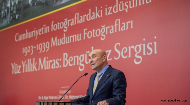 EGEOLAY/İzmir Büyükşehir Belediye Başkanı Tunç Soyer, 1923-1939 yılları arasında Cumhuriyet’in getirdiği dönüşümü belgeleyen Ahmet İzzet Bengüboz’un fotoğraflarından oluşan Yüz Yıllık Miras Bengüboz Fotoğraf Sergisi’nin açılışında konuştu. Başkan Soyer, “Mudurnu’daki takta ‘İnkılabı seven yayar’ diyor. Yaymaya, yaşatmaya, sahip çıkmaya devam edeceğiz. Çünkü biz inkılabı seviyoruz, Cumhuriyeti seviyoruz, Ata’mızı seviyoruz ve son nefesimize kadar da sahip çıkmaya devam edeceğiz” dedi.