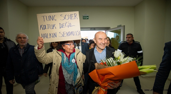 İklim krizine karşı yerel yönetim vizyonu ve eylem planlarıyla çığır açan İzmir Büyükşehir Belediyesi’nin 377 şehir arasından Avrupa Birliği’nin İklim Nötr ve Akıllı Şehirler Misyonu’na seçildiğini de hatırlatan Başkan Soyer, “Bu doğrultuda, 2030 yılına kadar şehrimizde salınan sera gazını sıfıra indiriyoruz. Bizim derdimiz hiçbir zaman makam, mevki olmadı. Hele hele günü kurtarmak ve sorunu halının altına süpürmek hiç olmadı. Ben bu şehre aşkla bağlıyım. Ne yorgunluk ne moral bozukluğu dinlemedik. Bizim tek bir meselemiz var. O da İzmir'e, 4 buçuk milyon İzmirliye hak ettiği hizmeti sunmaktır. Sizlerin huzurunda bir kez daha söz veriyorum. İzmir'den 40 alıp, 1 veren bu harami düzeni ya değiştireceğiz, ya değiştireceğiz! Bunun için son nefesime kadar mücadele etmeye devam edeceğim nerede olursam olayım” şeklinde konuştu.