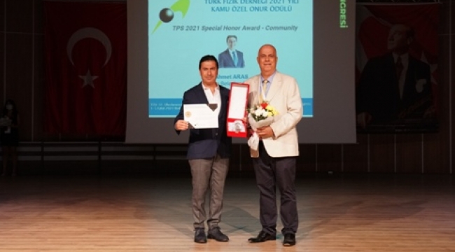 Açılış konuşmalarının ardından ödül törenine geçilen kongrede, Bodrum Belediye Başkanı Ahmet Aras'a , Prof.Dr. Baki Akkuş tarafından, Türk Fizik Derneği 2021 Kamu Özel Onur Ödülü takdim edildi.