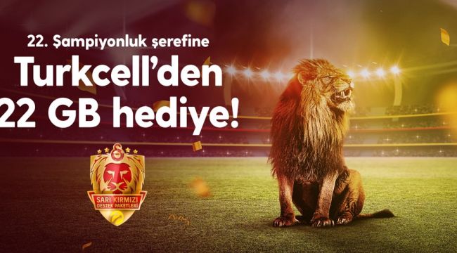 Turkcell dijital işbirliğine gittiği Galatasaray'ın taraftarlarına 22'nci şampiyonluğa özel sürpriz bir hediye hazırladı. Sarı-kırmızılı taraftarların şampiyonluk sevincini dijital ortamda doyasıya yaşamaları için 'Şampiyon' destek paketine sahip her bir taraftara 22GB hediye edilecek.