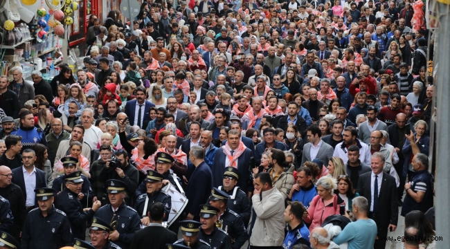 Atatürk Halk Eğitim Merkezi önünden başlayan korteje Başkan Tunç Soyer ve eşi Neptün Soyer ile; Seferihisar Belediye Başkanı İsmail Yetişkin ile Fatma Yetişkin, Ödemiş Belediye Başkanı Mehmet Eriş ile eşi Selma Eriş, eski CHP İzmir Milletvekili Musa Çam, İzmir Büyükşehir Belediyesi Genel Sekreter Yardımcıları Şükran Nurlu ile Ertuğrul Tugay, CHP Seferihisar İlçe Başkanı Senem Gürer Solak, İzmir Büyükşehir Belediyesi bürokratları, siyasi parti temsilcileri, muhtarlar, meclis üyeleri ve vatandaşlar katıldı.