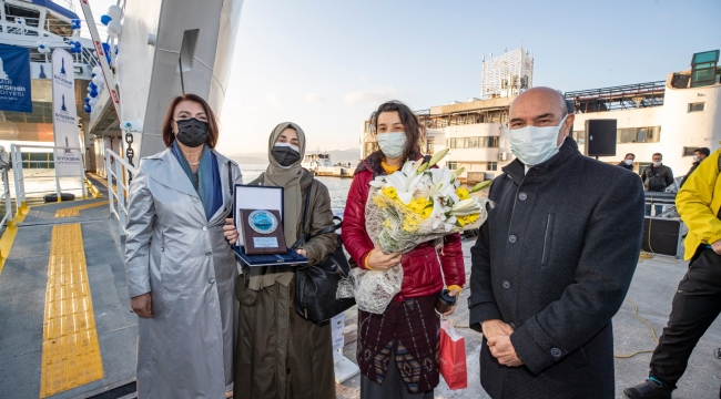 Başkan Soyer feribotun ilk arabalı yolcusu Dr. Önder Bayata ile ilk yaya yolcusu Berrin Kotan’a günün anısına çiçek ve plaket takdim etti. İlk arabalı yolcu Bayata, arabalı vapurun ilk yolcusu olmanın mutluğunu yaşadığını belirterek, “Özellikle feribotun isminin Uğur Mumcu olması da beni ayrıca duygulandırdı. Başkanımız Tunç Soyer’in yayaya önem veren, bisiklet ulaşımını teşvik eden yatırımlarını çok beğeniyorum” diye konuştu. İstanbul’da yaşayan arabalı vapurun ilk yaya yolcusu Berrin Kotan ise bu sürpriz karşısında çok şaşırdığını belirterek, İzmirliler’e yeni feribotun hayırlı uğurlu olmasını diledi.