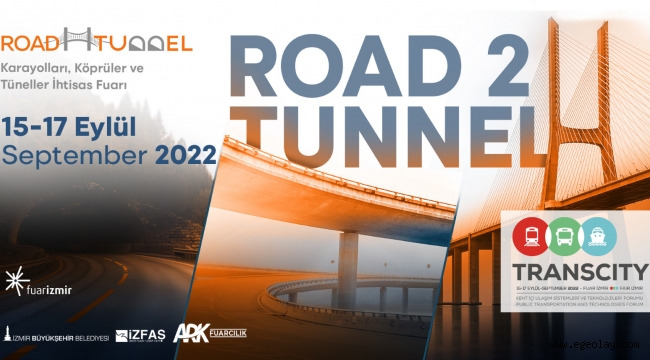 EGEOLAY/İzmir Büyükşehir Belediyesi ev sahipliğinde 15-17 Eylül tarihlerinde düzenlenen Road2Tunnel-5. Uluslararası Karayolları, Köprüler ve Tüneller Fuarı, “küresel projeler, güçlü kentler” anlayışıyla kamu kurum ve kuruluşlarıyla sektörün tüm paydaşlarını Fuar İzmir’de buluşturacak.