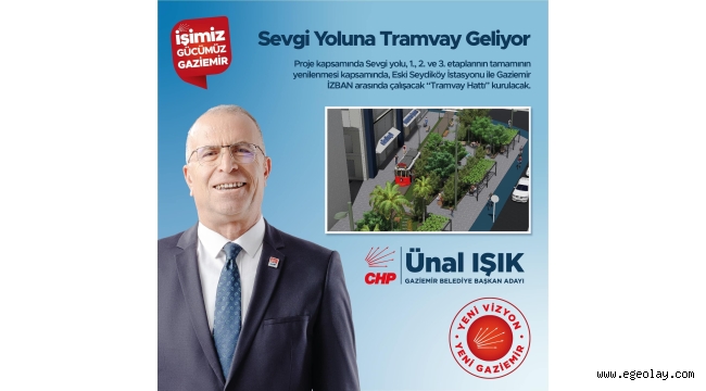 EGEOLAY/ CHP Gaziemir Belediye Başkan Adayı Ünal Işık ilçenin ulaşımını önemli oranda etkileyecek tramvay projesini hayata geçireceklerini söyledi.