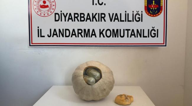 Diyarbakır'da düzenlenen bir operasyonda, bal kabağına gizlenmiş 17 paket halinde satışa hazır 3 kilo 150 gram esrar maddesi ele geçirildi.
