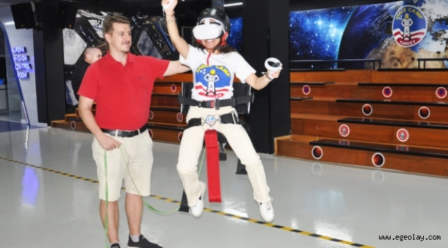 EGEOLAY/İzmir’de kurulu uzay teknolojileri eğitim merkezi Uzay Kampı Türkiyenin katılımcıları VR (sanal gerçeklik) ile “Ay’da yürümeye” başladı. Katılımcılar özel gözlük ve entegre edildiği simülatörle tıpkı NASA’nın Apollo astronotları gibi Ay’da yürümenin, yüzeyinde durmanın nasıl bir duygu olduğunu yaşarken, dünyanın uydusundan taş ve kaya örneklerini toplayabiliyorlar.