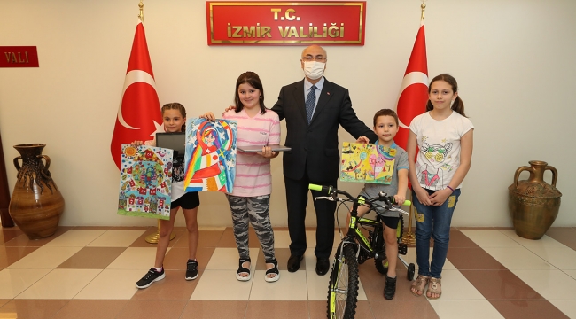 EGEOLAY/İzmir Valiliği tarafından, 23 Nisan Ulusal Egemenlik ve Çocuk Bayramı dolayısıyla düzenlenen resim yarışmasında dereceye girenler, ödüllerini valilik makamında aldı.