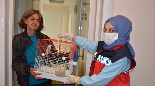 EGEOLAY/Torbalı’da sokağa çıkma yasağı bulunan evinde yalnız yaşayan yaşlı kadının ‘Kuş’ talebini Torbalı Belediyesi geri çevirmedi. Belediye ekipleri 67 yaşındaki kadının yalnızlığını, ‘Virüs Gülü’ adı konulan muhabbet kuşuyla sonlandırdı.