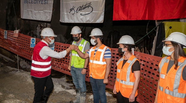 İzmir Büyükşehir Belediye Başkanı Tunç Soyer, Fahrettin Altay-Narlıdere metro hattının yapımında çalışan personelin de Ramazan Bayramı'nı kutladı. Ziyaret sırasında tünele inerek çalışmaları da inceleyen Başkan Soyer'e İzmir Büyükşehir Belediye Başkan Vekili Mustafa Özuslu, İzmir Büyükşehir Belediyesi Genel Sekreteri Dr. Buğra Gökçe, İzmir Büyükşehir Belediyesi Genel Sekreter Yardımcısı Eser Atak ile İzmir Büyükşehir Belediyesi Banliyö ve Raylı Sistem Yatırımları Dairesi Başkanı Mehmet Ergenekon eşlik etti. İşçilerle bayramlaşan Soyer, “Bu iş bittikten sonra çocuklarınıza anlatacağınız bir miras bırakıyorsunuz. Hepinizle gurur duyuyoruz” diye konuştu.