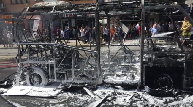 Maltepe'de yolcularını indirdikten sonra yol ortasına minibüsünü çeken bir sürücü, minibüsü benzin dökerek ateşe verdi. Alev alev yanan minibüs nedeniyle caddenin trafiği bir süre durdu.