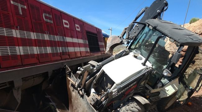 Yük treni demir yoluna giren iş makinesine çarptı.