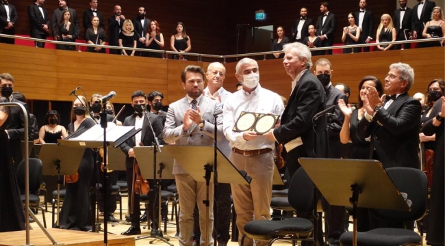 Etkinlikte Türksoy Korosu, İzmir Büyükşehir Belediyesi Başkanı Tunç Soyer’e teşekkür plaketi takdim etti. Plaketi İzmir Büyükşehir Belediyesi Genel Sekreter Yardımcısı Ertuğrul Tugay aldı.