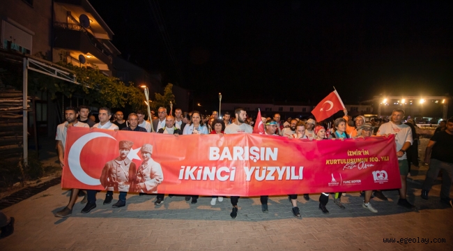 EGEOLAY/İzmir Büyükşehir Belediyesi’nin kentin kurtuluşunun 100’üncü yıl dönümü için düzenlediği Zafer ve Anma Yürüyüşü’nün ilk etabı dün gece Başkan Tunç Soyer’in yaktığı meşaleyle Afyon Dereçine’den başladı. Başkan Soyer, kafileyle 8 kilometre yürüyerek Yeşilçiftlik’e ulaştı.